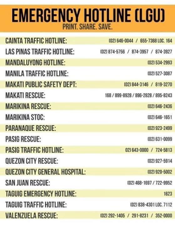 LGU Emergency nos. (Local government units/different localities) were posted as well. IMO, this is very useful to residents of applicable LGUs. But it’s one thing to post these numbers. I just hope that someone will answer these numbers when called!
